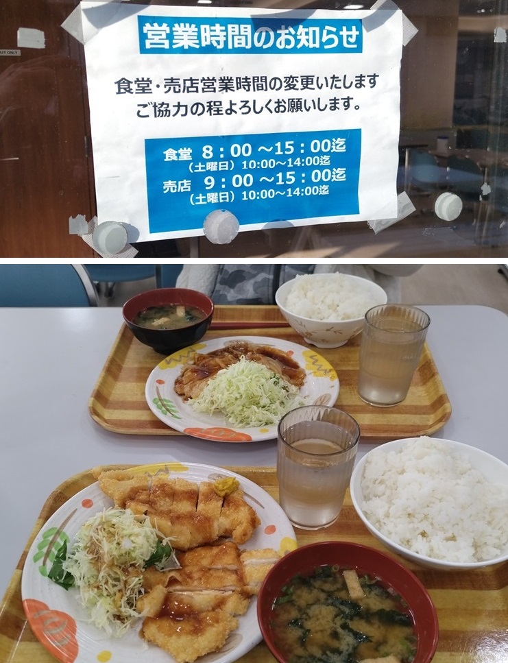 熟考の末、以前から行きたくてチャンスのなかった地元国際武道大学の学食へお邪魔しました。手前は一番人気だというチキンカツ定食。奥は定番の豚の生姜焼き定食。どちらも550円。一般人でも利用できる安価な学食。ごはんは武道大学生仕様なのか。普通盛りがどうみても一般的な大盛サイズ。みそ汁のお椀と比較してみて下さい。お椀がチビサイズみたいでしょ。ご馳走様でした!