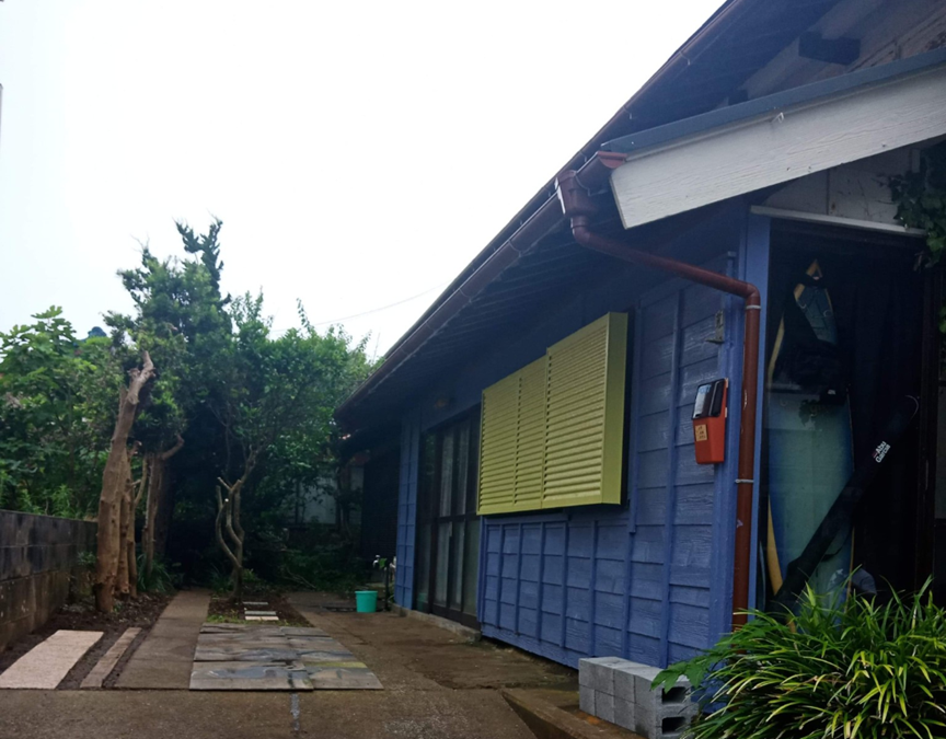 なんとか雑草はすべて除去。防草のために屋根材を地面に敷いたり、家屋の外壁もお気に入りの色に塗装。郵便ポストも設置。ここまでの費用はほぼ労働力のみで、ペンキ代も数千円だけ。まずは ”住める” 状態にまで持っていくのが目標でした。