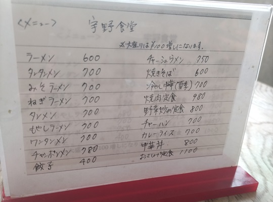 そんな中、昼間の仕事が長引くと15時頃の遅いランチ休憩という頃にはほとんどの勝浦市内の飲食店は閉まってしまっています。そこでお昼休憩なく開いている宇野食堂さんに本日はお邪魔しました。価格はかなりお手頃です。